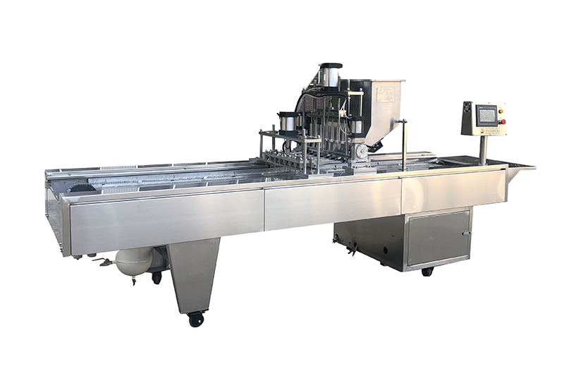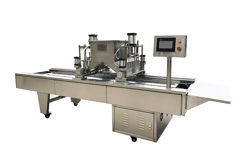 Como una de las máquinas principales en la producción de cupcakes rellenos, nuestra dosificadora de crema no es necesaria, ya que solo se utiliza para hornear pasteles rellenos. Está diseñada para dispensar el relleno en pasteles horneados en una cantidad ajustable. Nuestra dosificadora de crema está equipada con un PLC y una pantalla táctil de fácil manejo y alta calidad. Tiene una capacidad de 8000 unidades/hora o 1600 unidades/hora y pesa 560kg.