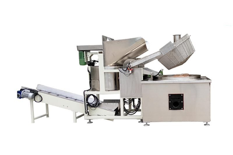 La freidora por lotes 300S está equipada con un sistema de desaceitado centrífugo y una cinta de descarga. Sirve para freír pellets. La temperatura y el tiempo de fritura son ajustables. Es uno de los productos más vendidos de Huaxing.