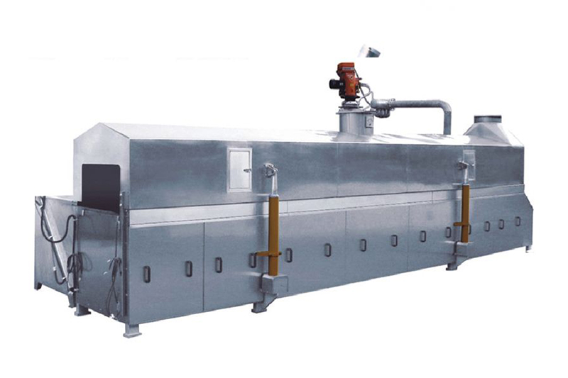Freidora continua LX con sistema de calentamiento externo y filtro básico. Los modelos de máquina, con diferentes estructuras internas y longitudes, están diseñados específicamente para distintos snacks. Sus componentes incluyen túnel de fritura, intercambiador de calor, tanque de aceite, tubería, bomba de aceite y filtro básico.